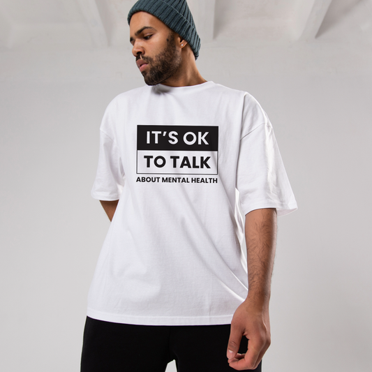 Front Design: Boldly printed with the phrase "It's OK to Talk", serving as a daily reminder that sharing your feelings is a sign of strength.